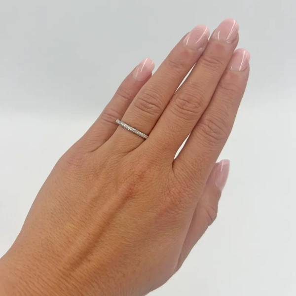 Aure 26 valkokulta huokuu modernia eleganssia. 26 briljanttihiottua timanttia, kukin 0,008 ct, valo taltioituu kauniisti klassisessa rapuympäristössä. Sormus on suunniteltu käytettäväksi sekä vihkisormuksena, kihlasormuksena tai yhdessä vastaavan saman sarjan pasianssisormuksen kanssa.