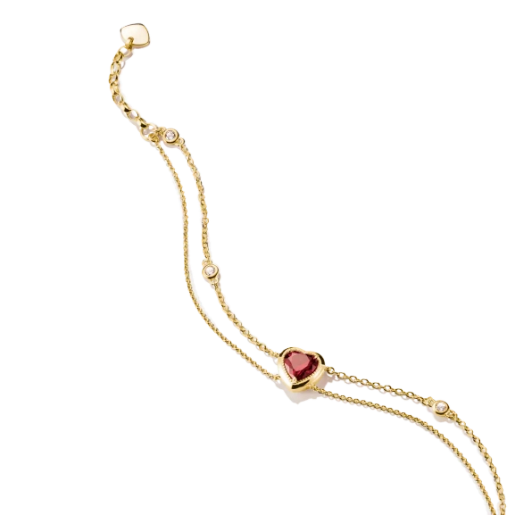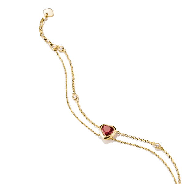 Double Row Bracelet with Garnet Heart Gold
