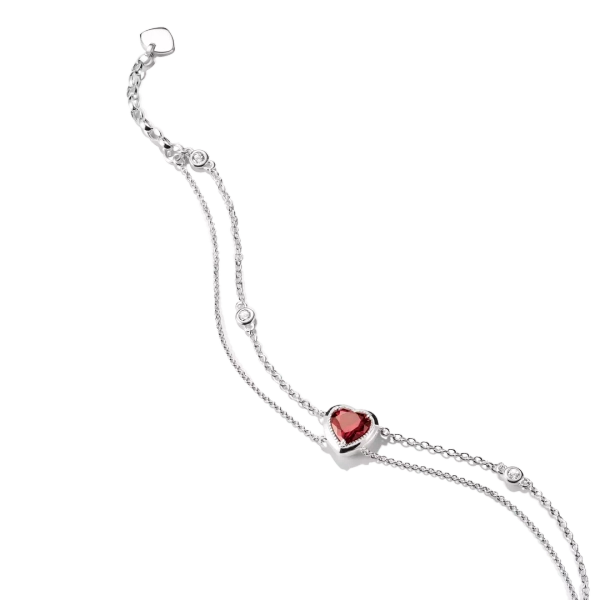 Double-row Bracelet with Garnet Heart