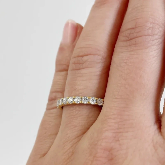 Löydä Eterna 03 Gold, täydellinen kihlasormus kaikkiin taianomaisiin hetkiin. Tämä sormus säteilee ajatonta kauneutta, jossa on kaksitoista kimaltelevaa 0,03 karaatin timanttia, jotka on asetettu tyylikkäästi suojaavaan rapuympäristöön. Suora muoto ja kupillinen sisustus tarjoavat poikkeuksellista mukavuutta, joten se on ihanteellinen valinta elämän erityisiin hetkiin.