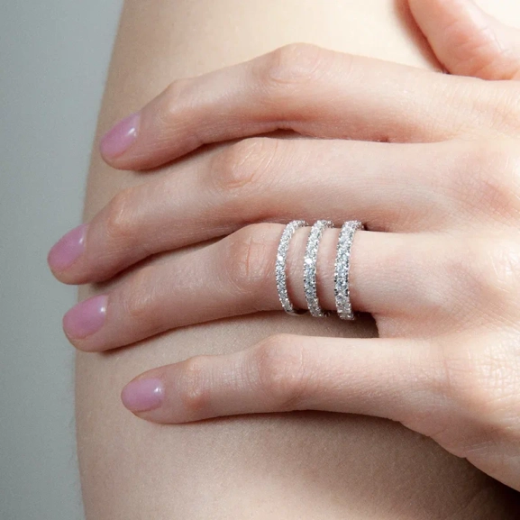 Eterna 07 Platina on täydellinen kihlasormus, joka on luotu tyylikkäällä pyöristetyllä nauhalla ja hienolla käsin leikatulla kalasatuasetelmalla. Jokainen 0,02 karaatin timantti on huolellisesti sijoitettu antamaan moderni ja tyylikäs vaikutelma. Tässä sormuksessa yhdistyy ajaton kauneus trendikkääseen muotoiluun, joten se on ihanteellinen sekä kihloihin että häihin.