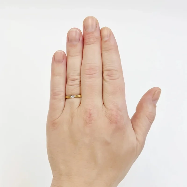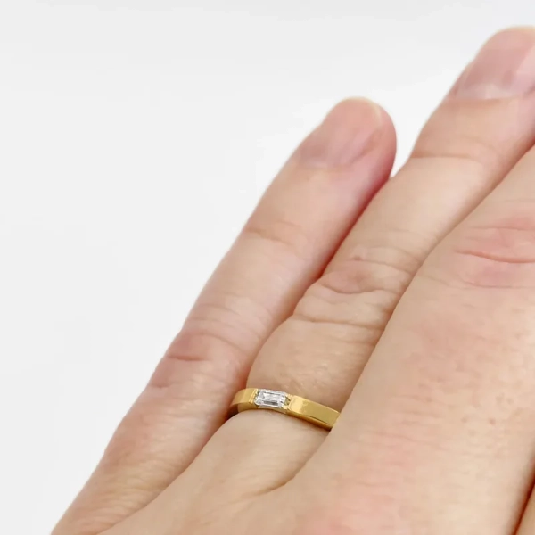 Eterna 13 Gold on tyylikäs kihlasormus patonkihiotulla 0,10 karaatin timantilla, joka on täydellinen niille, jotka etsivät jotain ainutlaatuista ja huomaamatonta. Puhdas muotoilu suoralla pohjasormuksella sopii sekä maskuliinisiin että naisellisiin käsiin, joten se sopii erinomaisesti kihlasormukseen, vihkisormukseen tai korusormukseen.