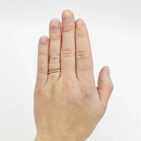 Eterna 15 Gold on täydellinen kihlasormus, jossa yhdistyvät ajaton eleganssi ja moderni muotoilu. Ainutlaatuisen ympäristönsä ja kimaltelevien timanttien ansiosta se on monipuolinen koru, joka korostaa mitä tahansa tyyliä. Se sopii sekä miehille että naisille, ja sitä voidaan käyttää yksinään tai muiden sormusten kanssa, joten se on ihanteellinen rakkauden ja elinikäisen sitoutumisen symboli.