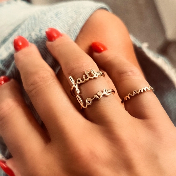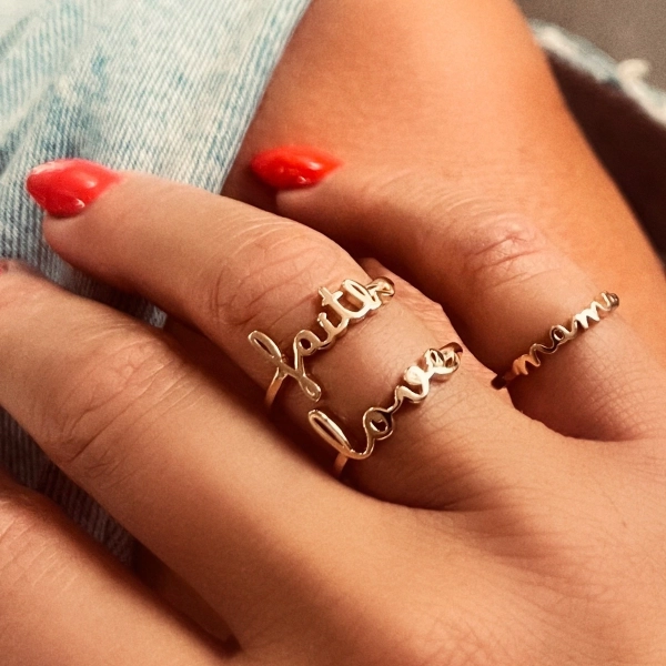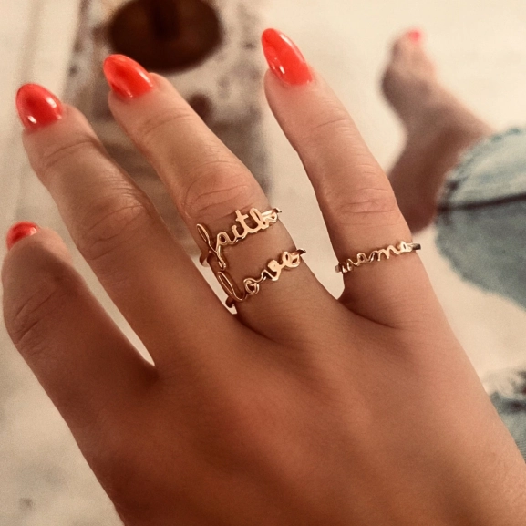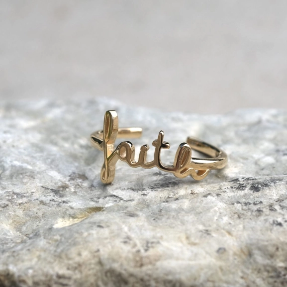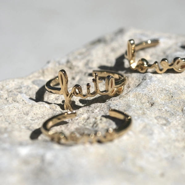 Emma Israelssonin Faith Ring Gold on ohut ja säädettävä sormus, jossa on sana ”faith” tyylikkäällä käsinkirjoitetulla fontilla. Tämä sormus täydentää täydellisesti heidän suosittua kaulakoruaan ja tarjoaa hienovaraisen mutta merkityksellisen tyylin. Faith Ring Gold on suunniteltu sopimaan kaikkiin tilaisuuksiin ja lisää hienostuneen tunnelman korukokoelmaasi. Löydä Emma Israelssonin Faith Ring Goldin ajaton kauneus ja syvä symboliikka, sormus, joka tekee todella vaikutuksen.