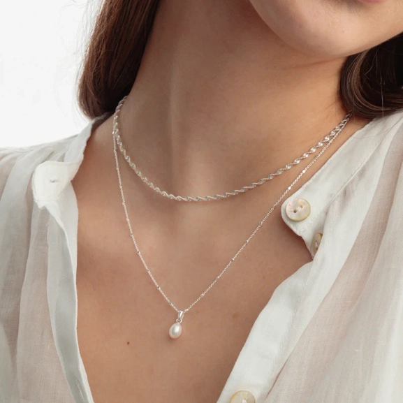 Herringbone Twisted Necklace Silver