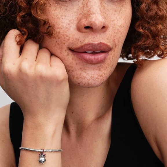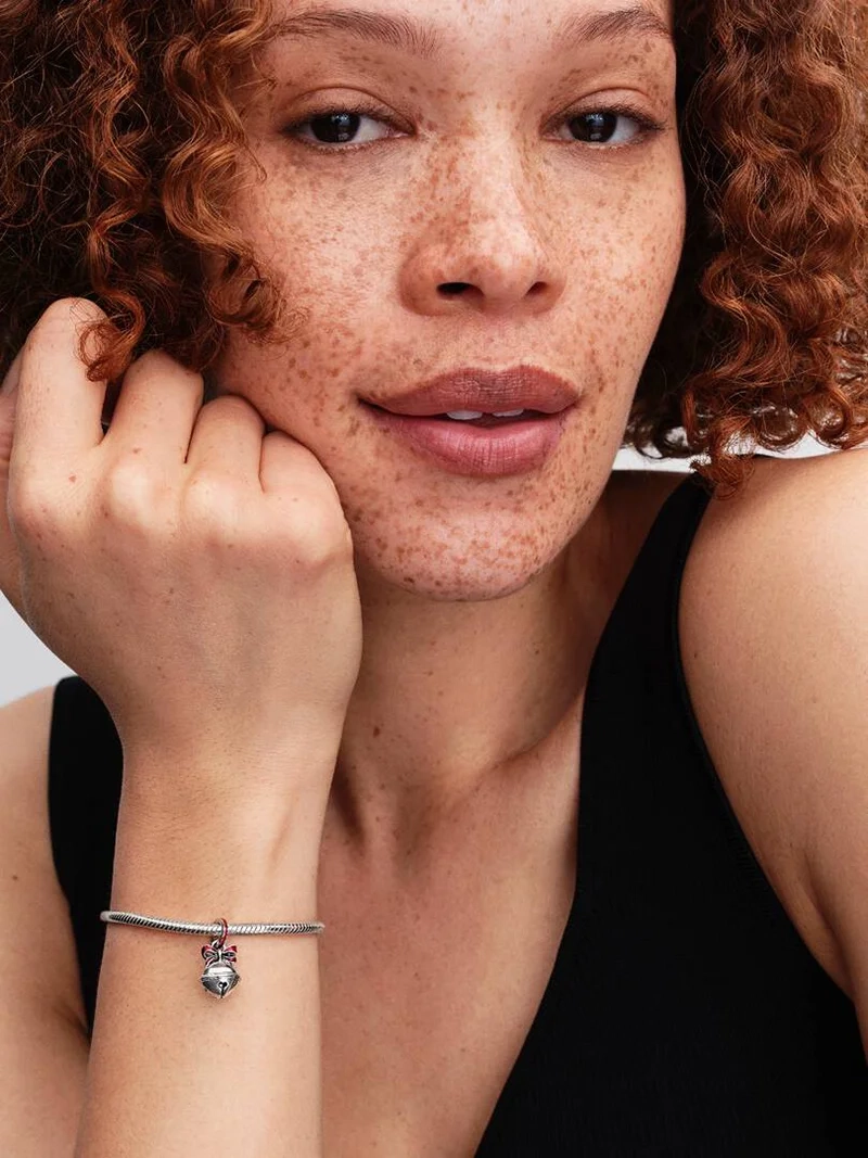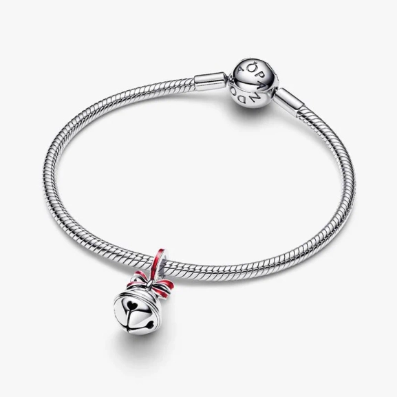 Kulkusilmuja koko joulun ajan. Tämä sterlinghopeakoru on koristeltu kiiltävällä punaisella emalilla ja nauhalla lukossa tuomaan juhlavan säväyksen. Voit stailata sen sellaisenaan tai pinota sen päälle saadaksesi lisää joulukimallusta – ja kulkusia.