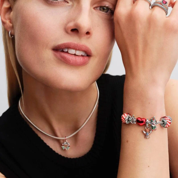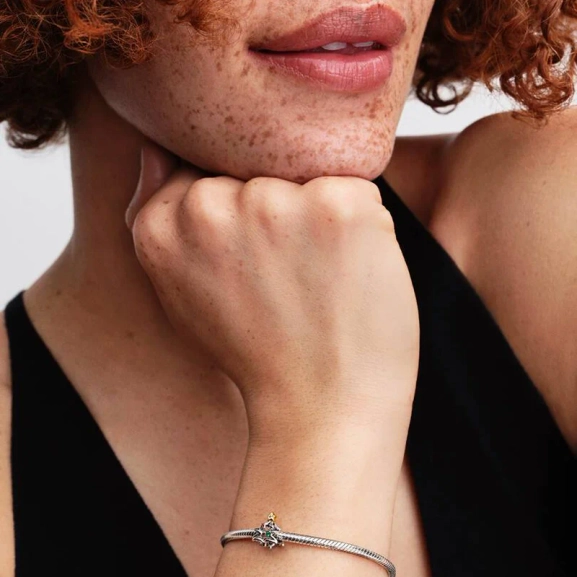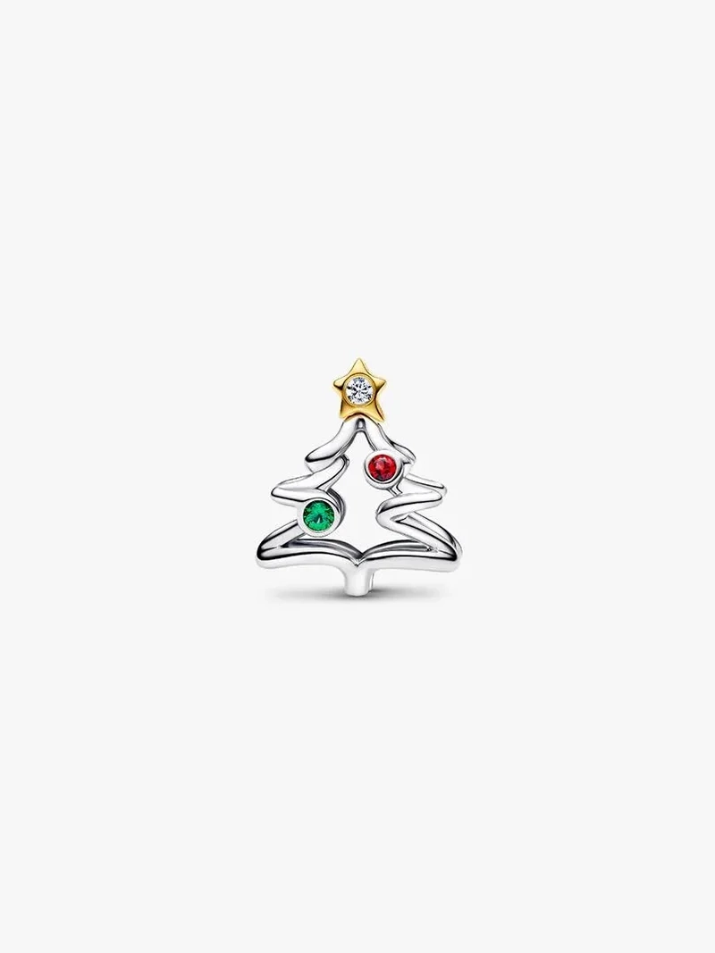 Juhlava klassikko uudella twistillä – tämä avokuosillinen joulukuusenkoriste yhdistää sterlinghopeaa ja 14 karaatin kultaa eloisiin punaisiin ja vihreisiin tekokristalleihin sekä tähdenmuotoiseen yläosaan. Suunniteltu piristämään juhlailmettäsi.