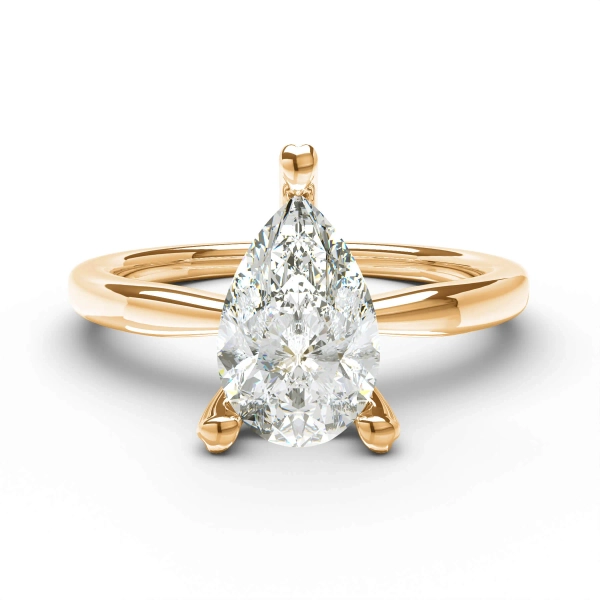 Kultainen North Dropform on elegantti kihlasormus, jossa on pisarahiottu, laboratoriossa kasvatettu timantti herkemmässä koossa. Hionta antaa sormukselle ilmeikkään mutta kevyen vaikutelman, täydellinen niille, jotka arvostavat selkeää muotoa hienovaraisemmassa mittakaavassa.