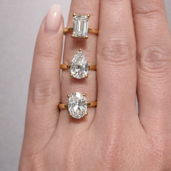 Kultainen North Dropform on voimakas kihlasormus, jossa on pisarahiottu laboratoriossa kasvatettu timantti. Terävä muoto luo selkeän ja elegantin ilmeen, joka kiinnittää huomiota, kun taas pyöreä pohja luo pehmeän tasapainon. Sileä tanko antaa timantin ottaa paikkansa tinkimättä käyttömukavuudesta.