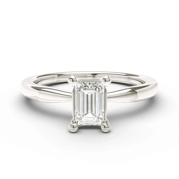 Valkokullassa sormuksen puhtaat linjat ja smaragdihionnan graafinen luonne korostuvat. Hionta luo rauhallisen valonleikin, jossa korostuu syvyys ja symmetria, ja rengas antaa sormukselle modernin ja tyylikkään yleisvaikutelman.