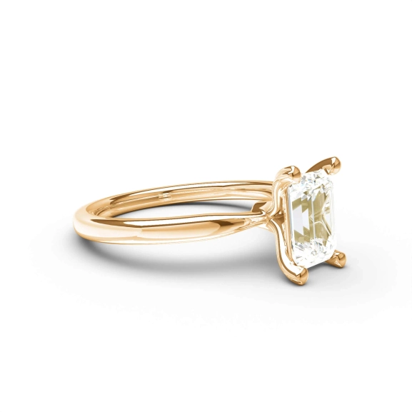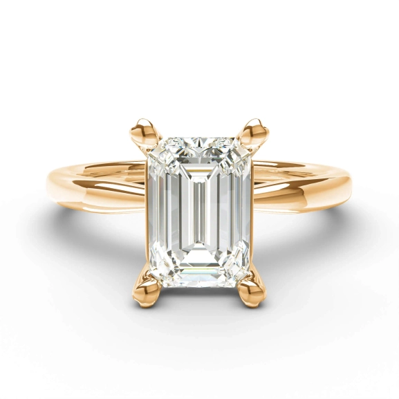 Kultainen North Emerald on elegantti kihlasormus, jossa on tasapainoinen smaragdihiottu laboratoriossa kasvatettu timantti. Hionta antaa sormukselle tyylikkään ilmeen, jossa timantin selkeys ja symmetria ovat keskipisteessä. Sileä nauha tekee sormuksesta kevyen ja mukavan käyttää.