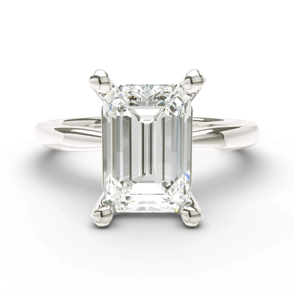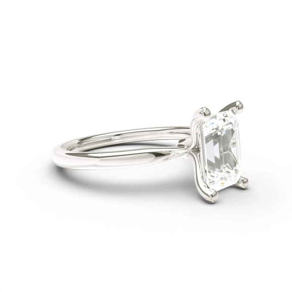Valkokullasta valmistetun timantin hionta erottuu selkeällä tarkkuudella. Suuret fasetit luovat rauhallisen ja heijastavan valonleikin, joka antaa sormukselle modernin ja harkitun luonteen. Kihlasormus niille, jotka arvostavat rakennetta ja tasapainoa.