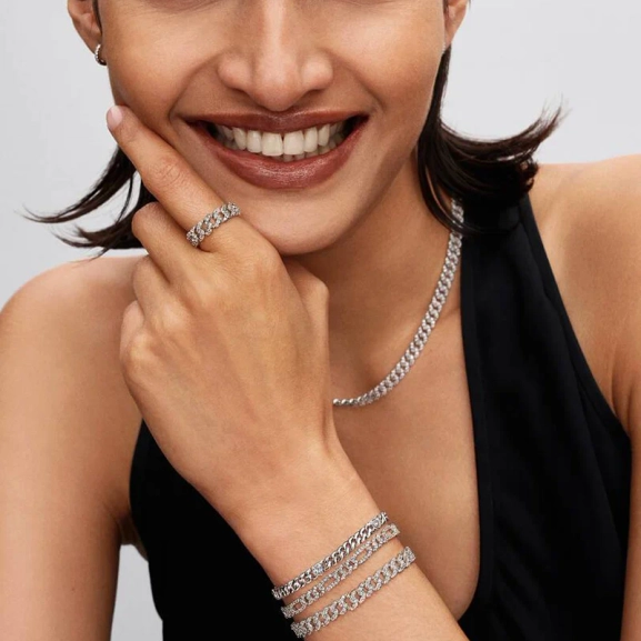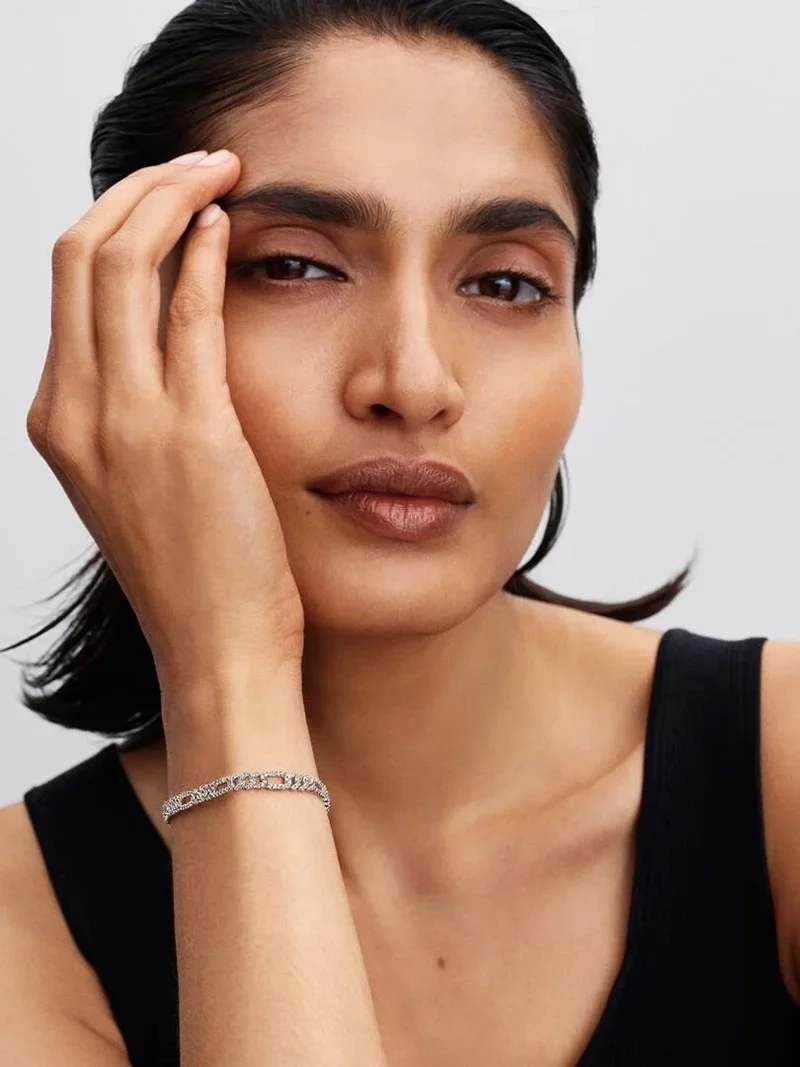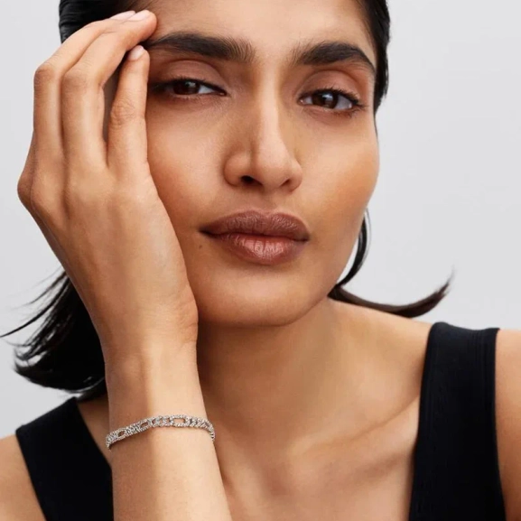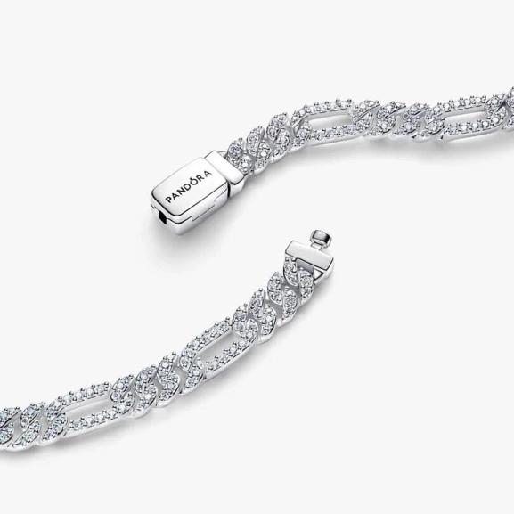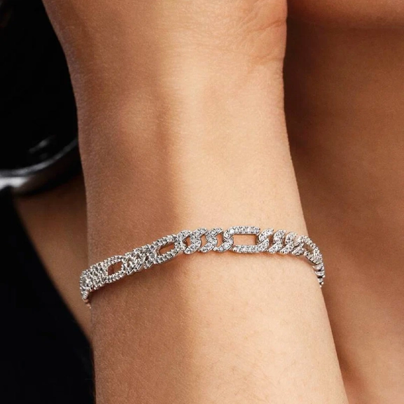 Säteile valoa ja loista eleganssilla. Sterlinghopeasta valmistettu ketjurannekorumme on täydellinen lisä arkeen tai eleganttiin tilaisuuteen, ja sen soikeat lenkit on koristeltu upeilla kivillä.