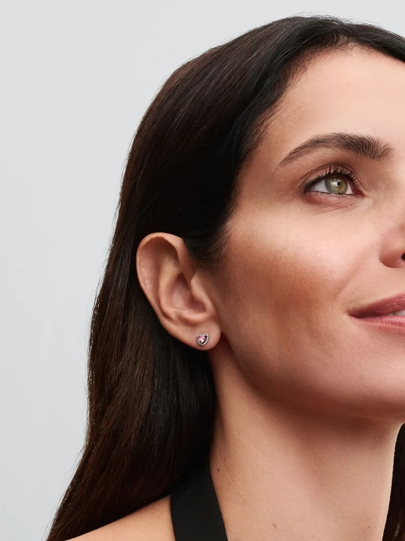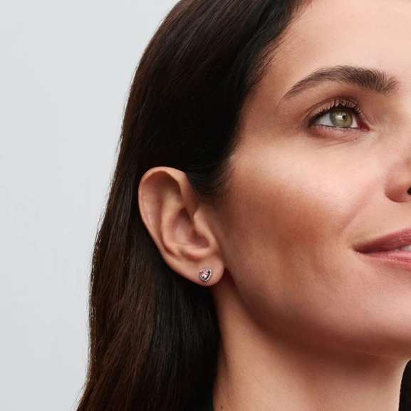 Nämä sterlinghopeiset nappikorvakorut tuovat asukokonaisuuksiin ripauksen pinkkiä ja viileitä sävyjä. Sydämen muotoiset pinkit kivet ovat hieman kohollaan, ja niitä ympäröi säihkyvä pavé-kehys. Rakkaudesta ja kiitollisuudesta inspiraationsa saaneet korvakorut ilmentävät kaikkia sydämestä tulevia lämpimiä ja säihkyviä tunteita. Anna korvakorut lahjaksi läheisellesi tai lisää ne omaan kokoelmaasi, kun kaipaat pinkkiä väriläiskää tai muistutuksen rakkauden jakamisesta.