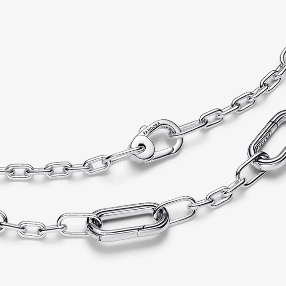 Tässä säädettävässä sterlinghopeisessa kaulakorussa on viisi avattavaa lenkkiä, joihin voi kiinnittää enintään kaksi riipushelaa tai kahdeksan miniriipushelaa.
